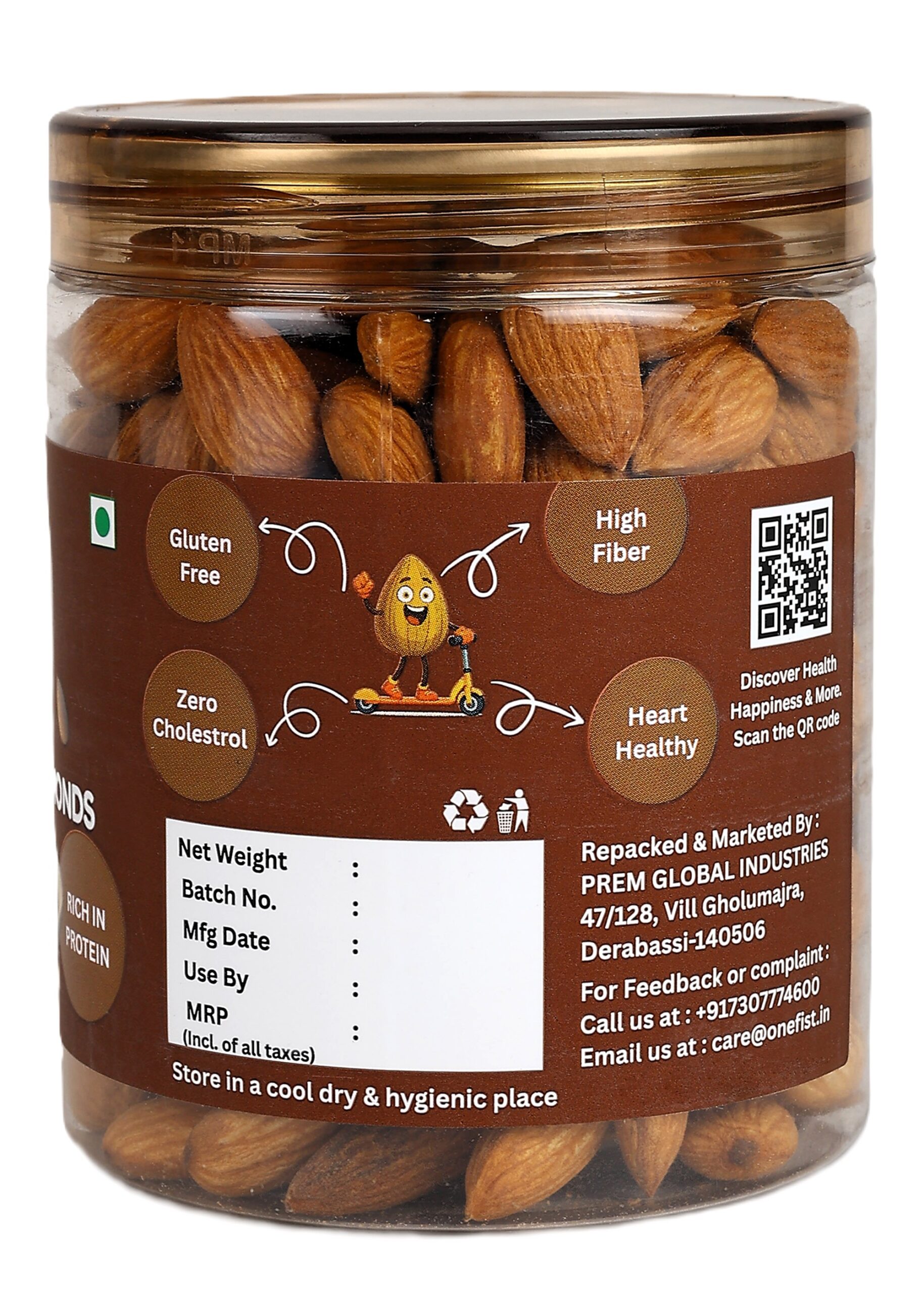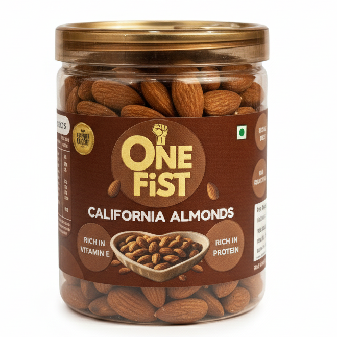 Premium California Almonds (Badam) — One Fist brings you hand-picked, grade-A California almonds that deliver superior crunch, taste and nutrition. Sourced from trusted orchards and packed under strict hygiene controls, these almonds are ideal for everyday snacking, baking, gifting and healthy recipes.