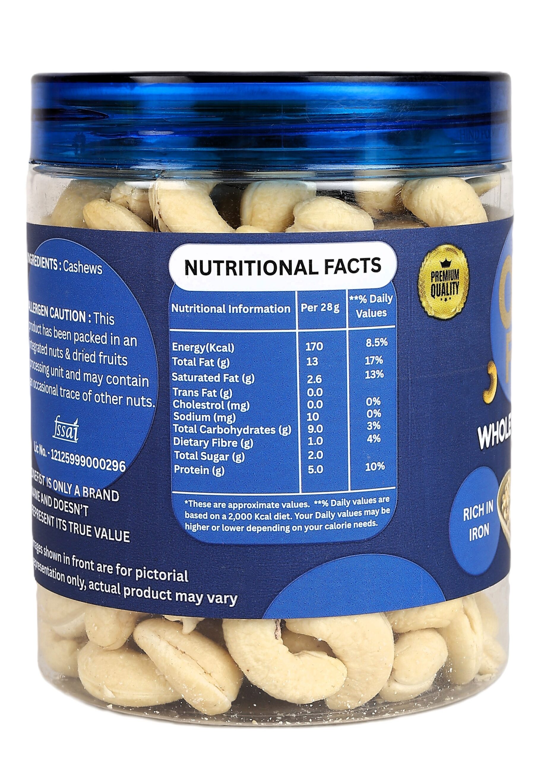 Cashews are packed with healthy fats, protein, fiber, vitamins (E, K, B6), and minerals like zinc, magnesium, iron, and copper — all essential for body function and immunity.