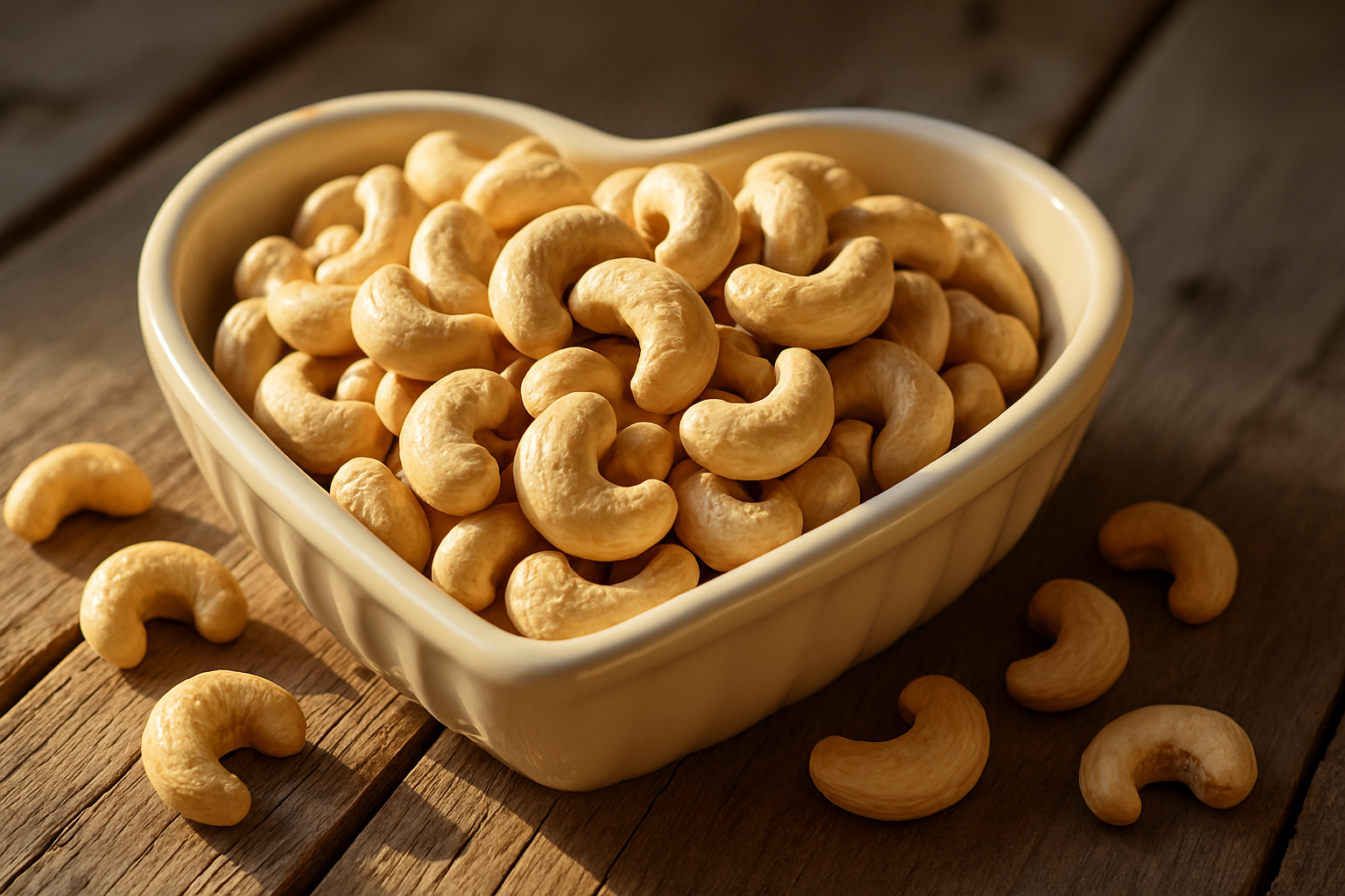 Cashews contain monounsaturated fats (the good kind!) that help reduce bad cholesterol (LDL) and improve good cholesterol (HDL), supporting a healthy heart.