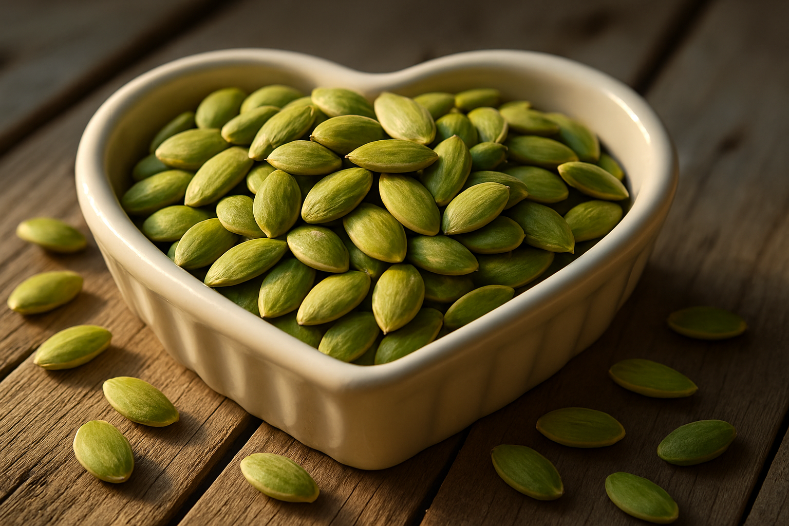 Loaded with magnesium and good fats, pumpkin seeds help reduce blood pressure, balance cholesterol, and improve overall heart function.